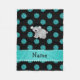 Personalised name koala turquoise polka dots fleece blanket