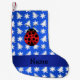 Personalised name ladybug blue snowflakes trees small christmas stocking