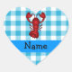 Personalised name lobster blue gingham pattern heart sticker