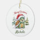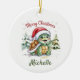 Personalised Name Merry Christmas Turtle in Santa Ceramic Ornament