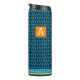 Take your favourite drinks on the go with this personalised thermal tumbler featuring a bold blue patterned background and a bright orange name panel. Customise with your name, monogram, or personal message for a stylish and practical gift.