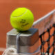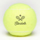 Personalised tennis balls printed with custom name or text in an edgy, bold, sporty modern feminine girly script font and classic double crossed tennis racquet and tennis ball icon monogram. A perfect gift for any woman or teen tennis player who would love the fun and unique twist on the classic tennis icon design of these modern monogrammed practice and keepsake tennis balls.
