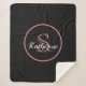 Personalised Name Monogram Black Pink Sherpa Throw Blanket