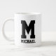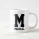 Personalised name monogram extra large Giant Coffee Mug. Big black and white cup with monogrammed name initial letter. Custom gift for him or her. Make one for dad, husband, father, grandpa, uncle, brother, friend, co worker, boss, boyfriend, son, mum, sister, etc. Great for Birthday or Father's day!