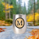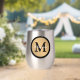 Personalise this gold metallic look button outlined in black with any name and single custom monogram.