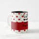 Create your own Personalised with a name,monogram, or initials or saying cartoon cute baby panda bear with heart eyes with a white red cherry pattern background (fruits) and red stripe