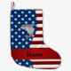 Create your own custom Personalised with just add your name (family name),monogram, greeting or initials or saying cute cartoon black shark with a navy blue and white stars with red and white stripes usa american patriotic pattern background and red stripe. Cute shark patriotic gift ideas.