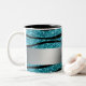 Personalised name penguin turquoise glitter zebra Two-Tone coffee mug