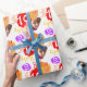 Modern text and paint dabbed splats personalised age and name birthday kids custom photo gift wrapping paper, featuring your own child's photo and name in red, purple, white, orange and yellow. Personalise with your own short name (please note not all names will fit due to the nature of the font) and your kids double figure age, currently reads Bailey 10, other name lengths are available, if you need help fitting your name please contact me. A great way to give a personalised touch to art party birthday gifts. Uniquely designed by Sarah Trett.