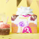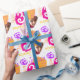 Modern text and paint dabbed splats personalised age and name birthday girls custom photo gift wrapping paper, featuring your own child's photo and name in pink, purple, white, orange and yellow. Personalise with your own short name (please note not all names will fit due to the nature of the font) and single digit kids age, currently reads Jessica 3, other name lengths are available, if you need help fitting your name please contact me. A great way to give a personalised touch to art party birthday gifts. Uniquely designed by Sarah Trett.