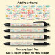 Personalised Name, Pink Aqua Boho Feathers Black Ink Pen