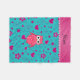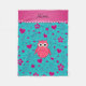 Personalised name pink owl turquoise pink hearts fleece blanket