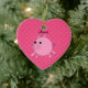 Personalised name pink pig hearts ceramic tree decoration