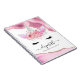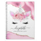 Personalised unicorn notebook featuring pink and gold glitter agate crystal edges, a cute unicorn face with girly florals, the childs name in a elegant calligraphy font, and a personalised saying that can be deleted.