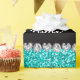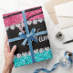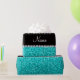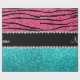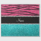 Pink zebra stripes animal print pattern background and bright aqua / turquoise glitter (not real glitter) black diamonds stripe (faux diamonds, not real) with hearts and dots personalised with your name gifts or monogram gifts or your initials. Ideal for bride and groom weddings, wedding showers, engagement showers, engagement party, anniversary, save the date, bachelorette party, birthdays, and much more featuring an elegant and traditional fancy lettering