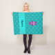 Create your own custom Personalised with a name,monogram, or initials or saying cute cartoon purple hippo animal with a retro half circles turquoise background and turquoise stripe. Cute hippo gift ideas.