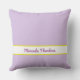 Modern, elegant pillow with a photo of a beautiful purple pink rose on the front and a personalised name in a casual handwriting script on the back. A decorative pillow for lover of flowers, in general, and roses in particular.