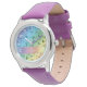 The watch looks exactly as depicted.  I was especially pleased with the watch band, which is a nice quality, supple leather.  I point this out because an option, which was sold out, was with a multi-colored but clearly plastic band.  This is the better choice, in my view.