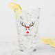 Personalised name Christmas holiday pint glass with cute reindeer face design with bow.