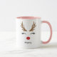 Personalised name Christmas holiday mug with cute reindeer face design.
