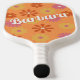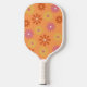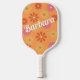Pickleball paddle in a pretty daisy flower power hippie style pattern in colours of oranges, golden yellow, and pink with the name in colours of Oranges and yellow. Colours of the name or change it to a monogram, can be changed, just ungroup them and choose from the colour pallet. To make more changes go to Personalise this template. On the bottom you’ll see “Want to customise this design even further? Click on the EDIT using Design tool. From there you can change some of the fonts & some colours, move things around or delete what you need. Makes a great gift for your coach, team or best pickleball buddy!