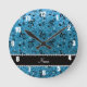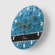 Personalised name sky blue glitter music notes round clock