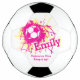 Yellow and pink football / soccer ball splatting in the net customised name ball. Perfect to inspire young female footballers and soccer players to keep it up. Personalise with your own name and message of encouragement. Currently reads Grace Defensive Diva Keep it up. Unique design by Sarah Trett.