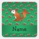 Create your own custom Personalised with just add your name (family name),monogram, greeting or initials or saying cute cartoon orange squirrel with with green christmas trees, green candy canes and red bows Christmas pattern background and green stripe. Cute squirrel Christmas gift ideas.