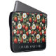 Laptop sleeve featuring a customisable name template in white and a lovely strawberries and blossoms pattern background. ©Doodlesgiftshop