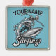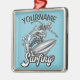 Personalised NAME Surfer Big Wave Skeleton Surfing Metal Ornament
