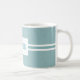 Discreet baby blue floral tulip pattern, name and surname customisable label mug. Perfect retirement gift.