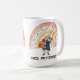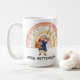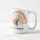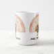 Customisable name mug gift for a teacher with cute watercolor painted boho rainbow and a bunny carrying books.