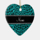 Personalised name turquoise leopard pattern ceramic tree decoration