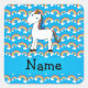 Personalised name unicorn blue rainbows square sticker