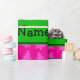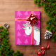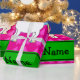 Create your own custom Personalised with just add your name (family name),monogram, greeting or initials or saying cute cartoon white unicorn with with pink christmas trees Christmas pattern background and green black stripe. Cute unicorn Christmas gift ideas.