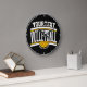 Purchased this online and it got delivered quickly. It was a present for my Dads 70th birthday. He loves clocks so decided to get him one with something written on it. Battery went in and it started working straight away. Dads had no issues with it. Printing was just how it came up online.