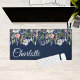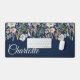 Personalised large computer or laptop desk mat with a name, wildflowers, and a navy background.
