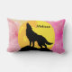 Silhouette of a wolf on top of a mountain howling at the moon with multicolored background it can also be personalised with any name you would like to give this pillow too.