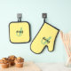 Personalised Name Yellow Oven Glove Mitt & Pot Holder Set