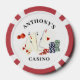 Personalised Name's Casino Poker Chips. Personalised poker chips for your poker room or use on poker night or game night. The design features the editable title NAME'S CASINO in your choice of text font styles and colours as well as the background colours and your choice of poker chip colour (shown with black text on a white background on a red poker chip. Make text and background colour changes in EDIT and choose other poker chip colours on the ordering page. Utilise as birthday thank you favours or special prizes or rewards at your event. ASSISTANCE: For help with design modification or personalisation or if you would like coordinating items, contact the designer BEFORE ordering via the Zazzle Chat MESSAGE tab or email at makeitaboutyoustore@gmail.com.