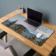 Personalised Blue and green Nature Mountain Forest Desk Mat with green forest trees and blue sky. Perfect for mountain lovers and forest lovers alike, will make a beautiful personalised desk mat for your home office.
