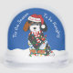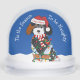 Cute Personalised Black and Tan hand drawn Bernedoodle Puppy wearing custom Santa hat, red and white holiday scarf, tangled in christmas lights. Festive "Tis the Season To be Naughty" snowy background. Add your bernedoodle's name to this adorable holiday snow globe.
