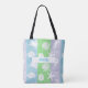 Personalised Nautical Beach Themed Sea Creatures blue, green and purple sea horse, sand dollar, crab, sea shell bag.