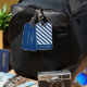This Modern Personalised Nautical Blue White Stripes Bag Tag with name and address Luggage Tags are perfect for the elegant traveller. Great gift option for father, son, brother, or friend.
