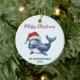 Personalised Nautical Whale in Santa Hat Christmas Ceramic Ornament