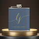 Personalised Calligraphy Script Signature Name Navy Blue Gold Bachelorette Flask