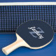 This personalised ping pong paddle features a blue grey monogram and white retro script name on a navy blue background.