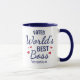 Let your boss know she's the best in your book with this voted world's best boss Navy blue coffee cup, which can also be a cappuccino mug or espresso cup. Red hearts make this the perfect gift for your lady boss.