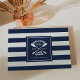 Our lakeside chic guest book is perfect for inviting your lake house or cottage guests to share their memories and good wishes. Featuring a classic colour palette of navy blue and white, our guest book's front and back are covered in wide horizontal navy and white stripes, with a solid navy spine. "Welcome to the Lake House" appears on the front cover embellished with canoe paddles, nautical rope and your year established. Personalise the spine with additional custom text.