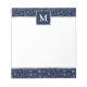 Celebrate the festive season with this personalised navy blue Christmas notepad, designed with classic holiday icons like Santa hats, Christmas trees, gifts, and snowflakes in white. The deep navy background paired with silver accents adds a sophisticated touch to your holiday stationery. The customisable monogram at the top makes it a perfect personal gift or a stylish addition to your holiday desk.